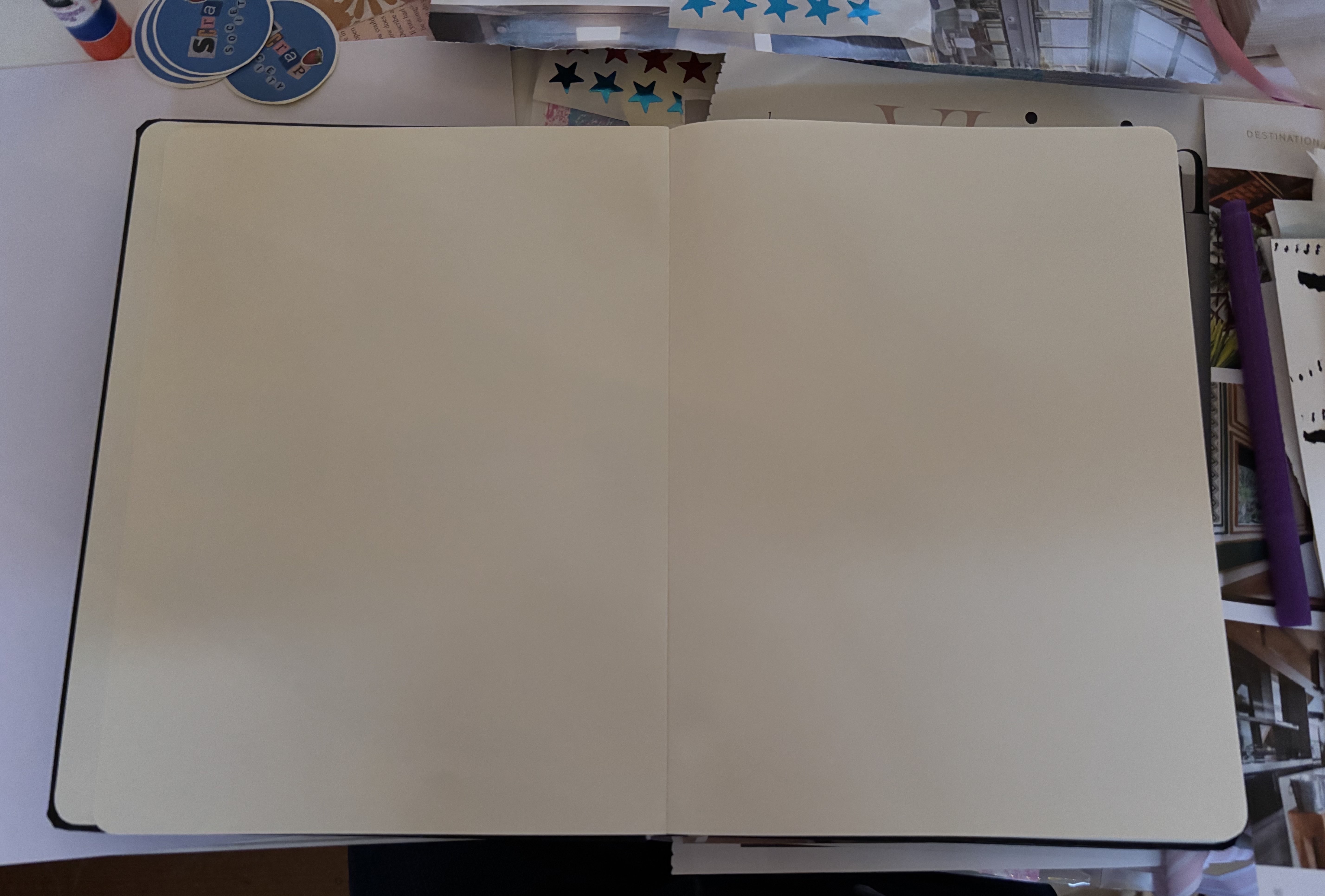 Across the evening, it was fascinating to see the journals on my table fill up with photos, cut-out magazine letters, and drawings.